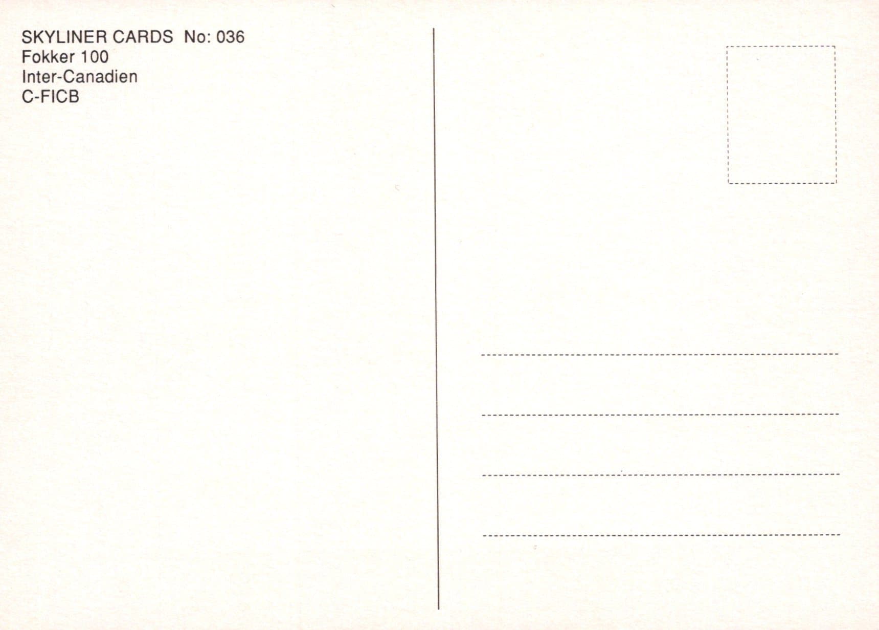 Aviation Postcard - Fokker 100 Inter-Canadien C-FICB Aeroplane - Mo’s Postcards