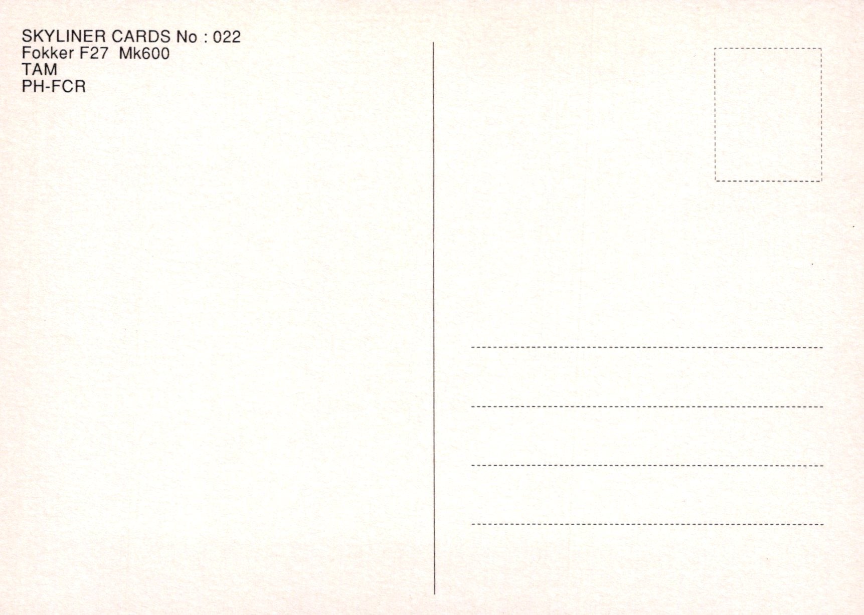Aviation Postcard - TAM PH-FCR Fokker F27 Aeroplane SW20314