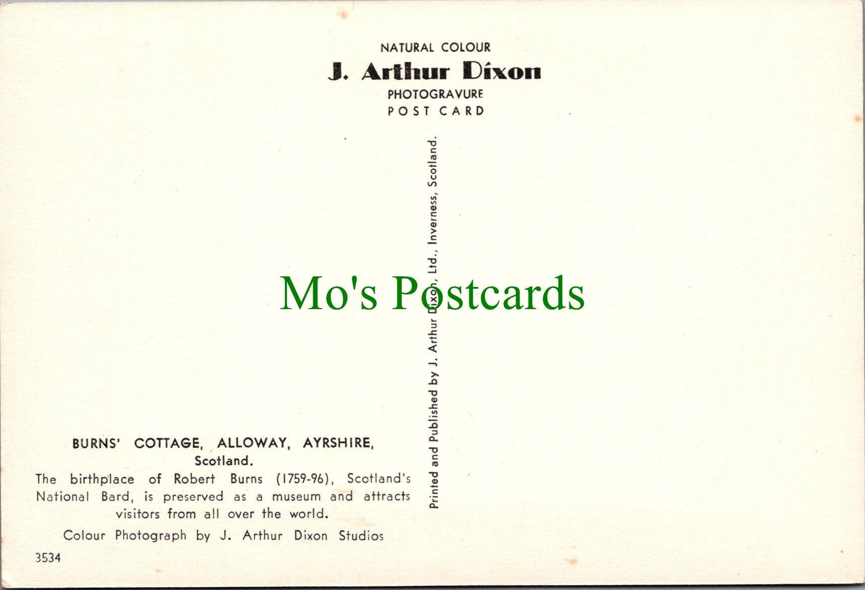 All of our beautiful postcards are posted to you inside a plastic sleeve and a board backed envelope which will be marked 'Please do not bend'. The 'Mo's Postcards' watermark does not appear on the actual postcard'.