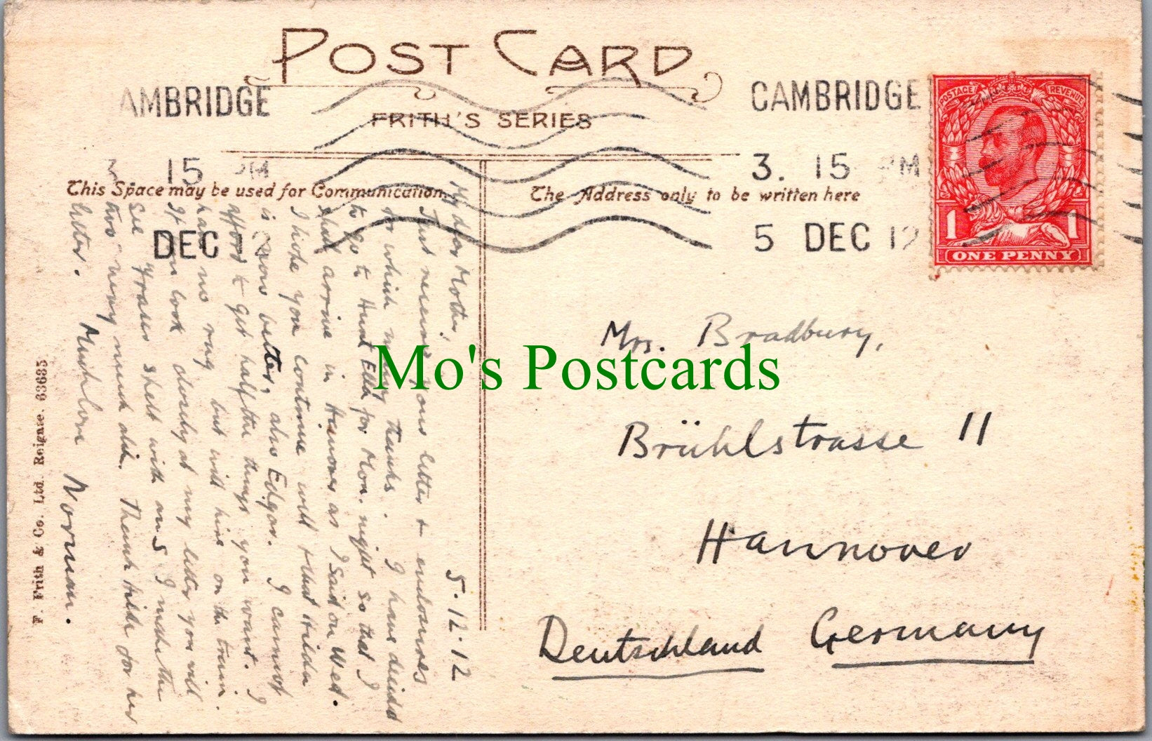 All of our postcards are posted to you inside a plastic sleeve and a board backed envelope which will be marked 'Please do not bend'. The 'Mo's Postcards' watermark does not appear on the actual postcard'.