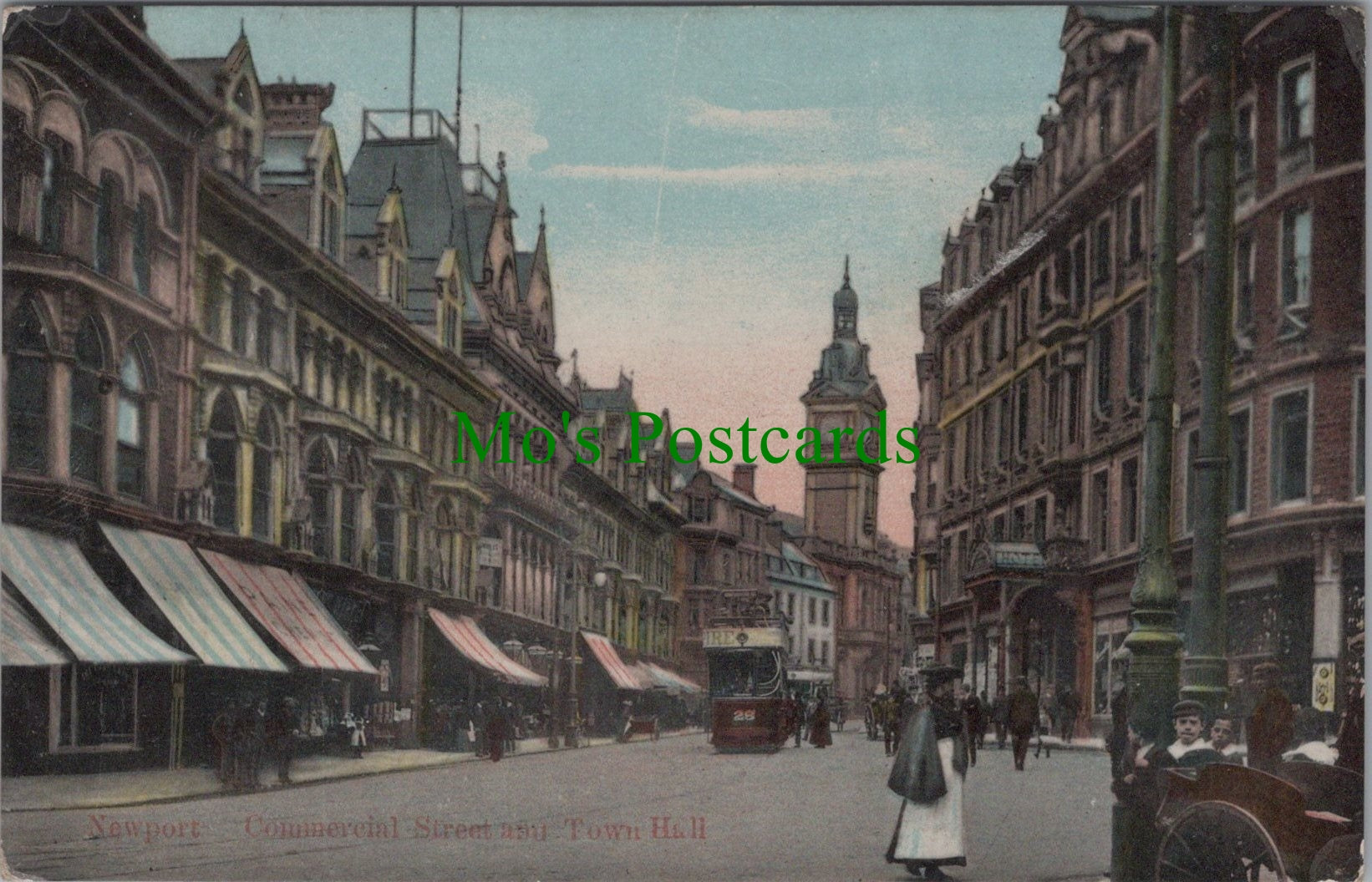 Commercial Street and Town Hall, Newport. This is a fantastic standard sized postcard which would be a great addition to your postcard collection. Published by Max Ettlinger & Co.