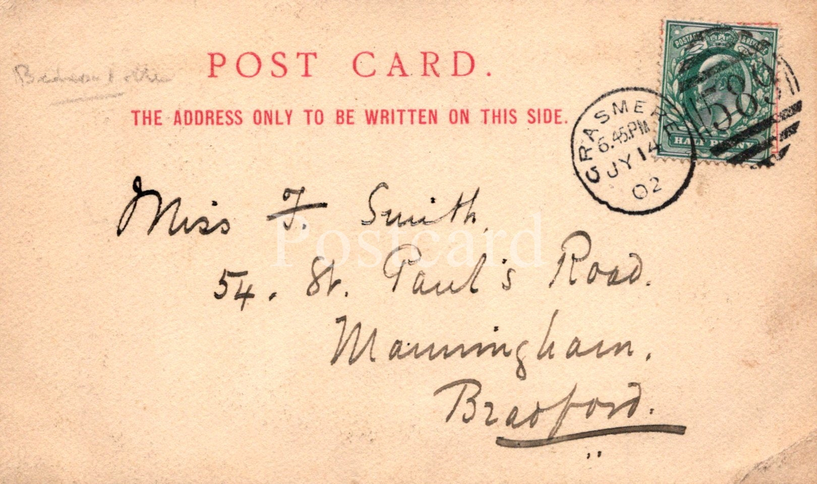 Postcard size:  Non standard. Posted in 1902 from Grasmere. This postcard measures 83mm x 140mm