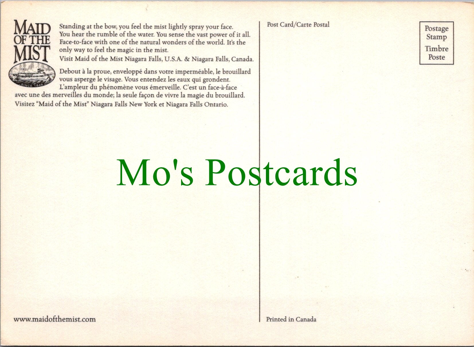 Mo's Ref: Ferry Postcard - Maid of The Mist, Niagara Falls SW13631