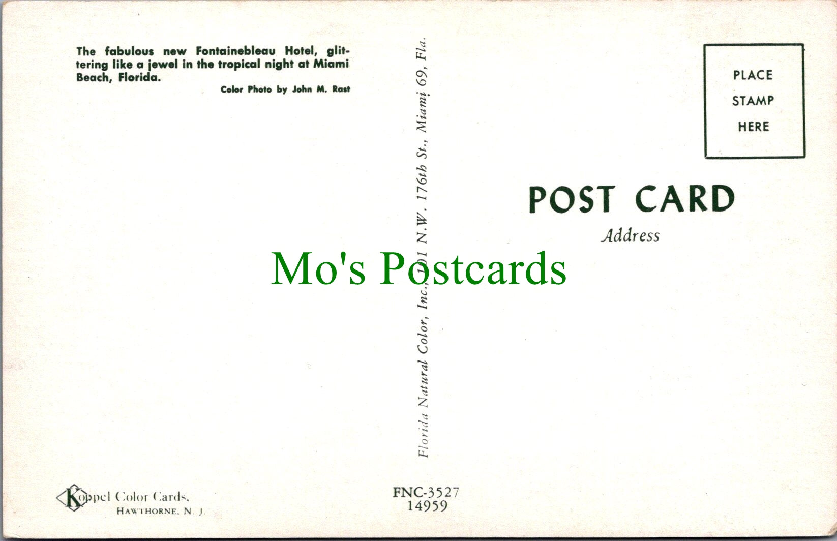 This is a postcard of the Fontainebleau Hotel, Miami Beach, Florida