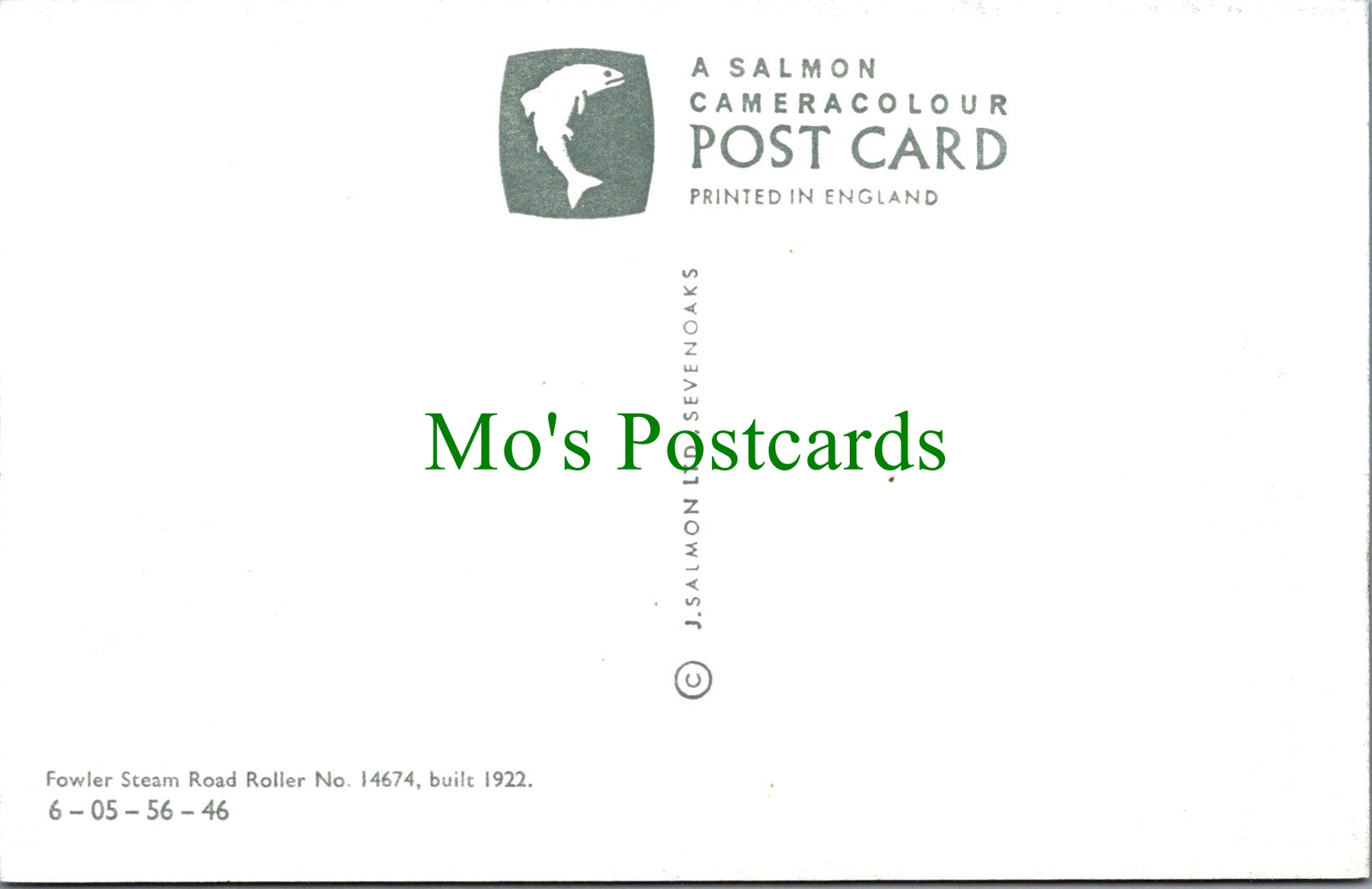 This is a postcard of a Fowler Steam Road Roller No 14674