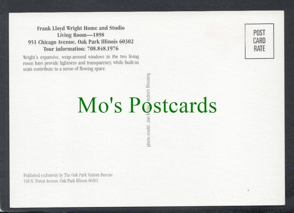 Mo's Postcards offers for sale a postcard of Frank Lloyd Wright Home, Oak Park, Illinois. Living Room - 1898.