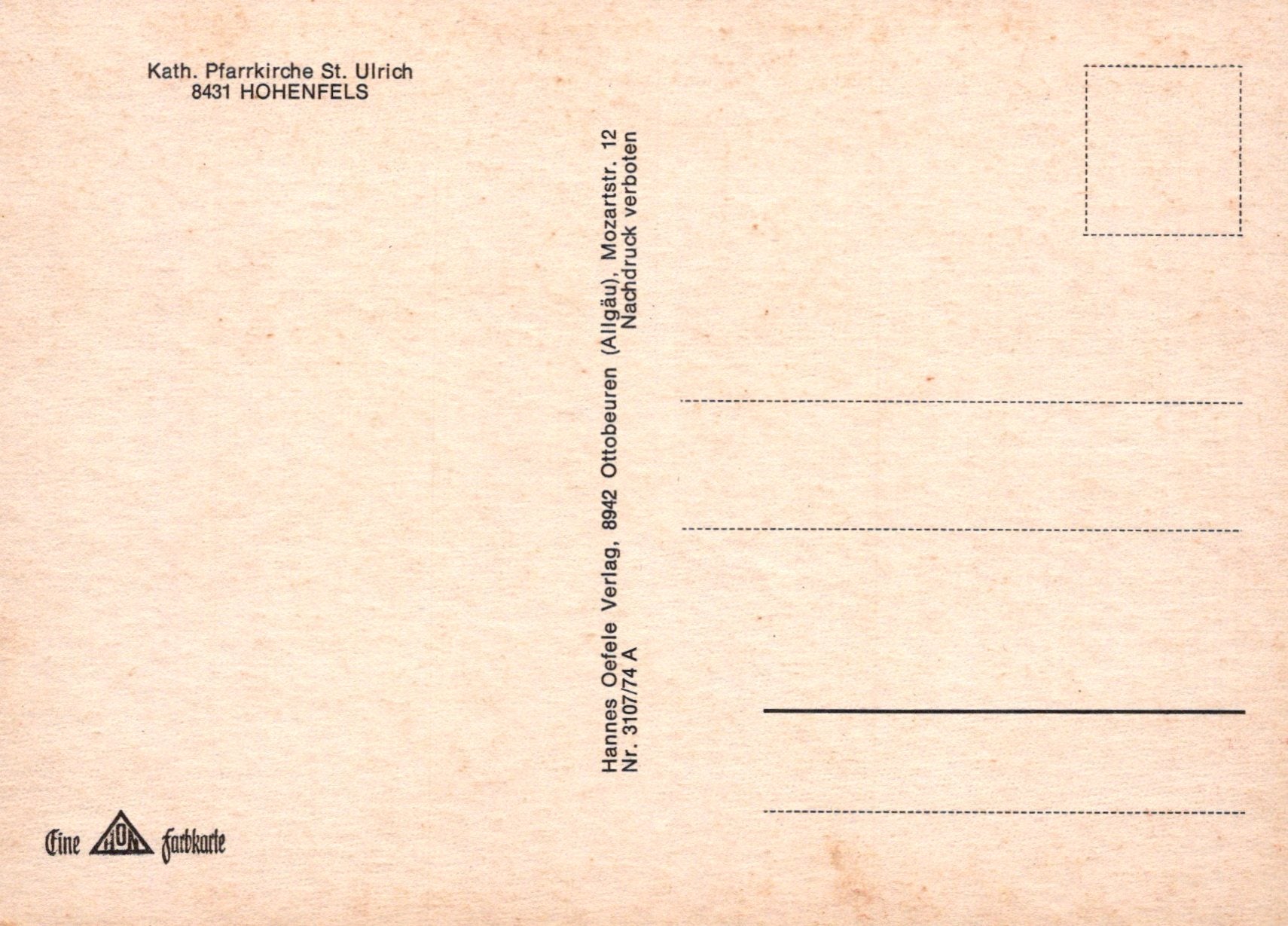 This is a Germany Postcard - Hohenfels, Kath.Pfarrkirche St Ulrich SW19864