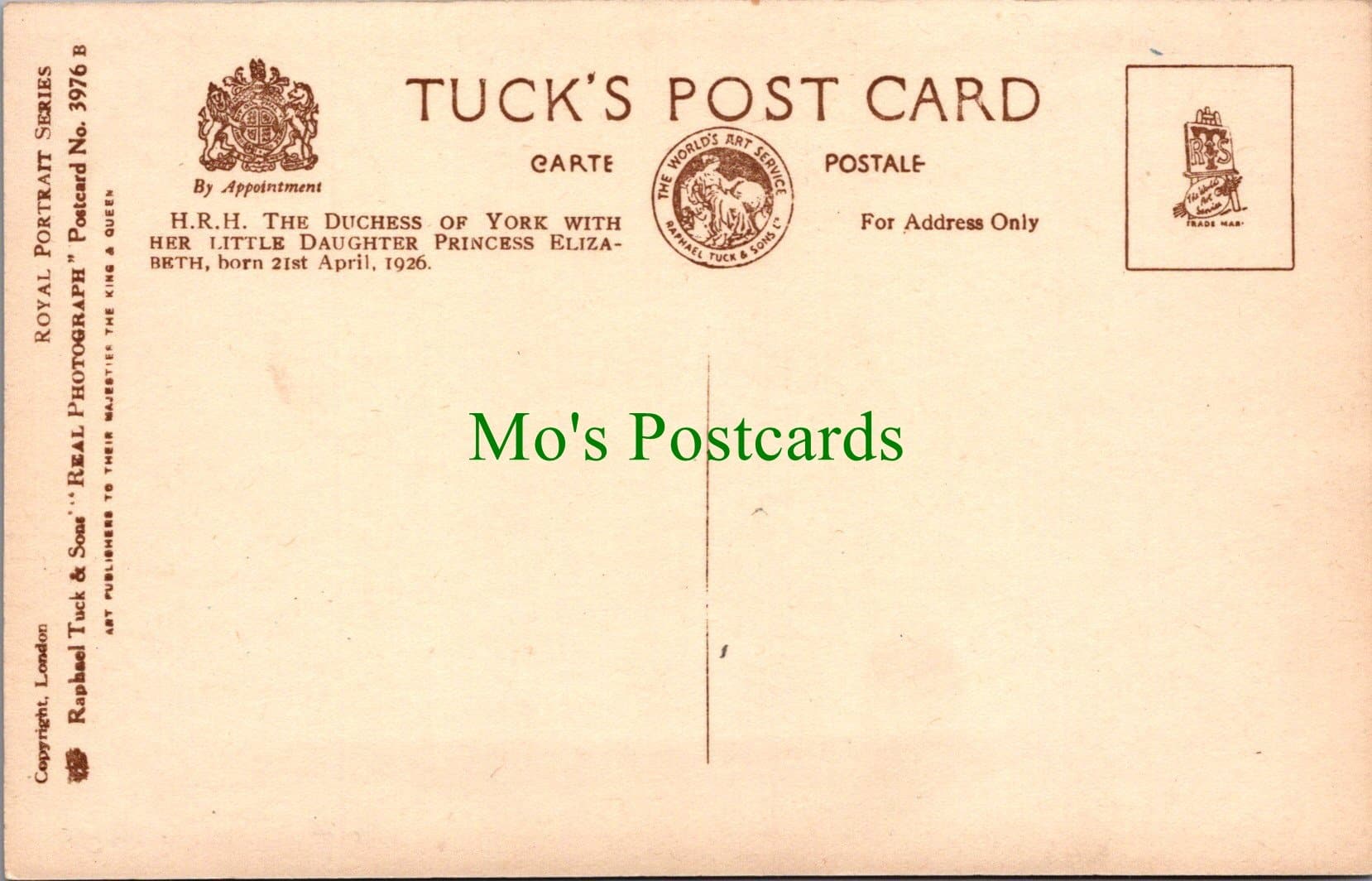 Mo's Postcards offers for sale postcard of H.R.H.The Duchess of York & Princess Elizabeth.