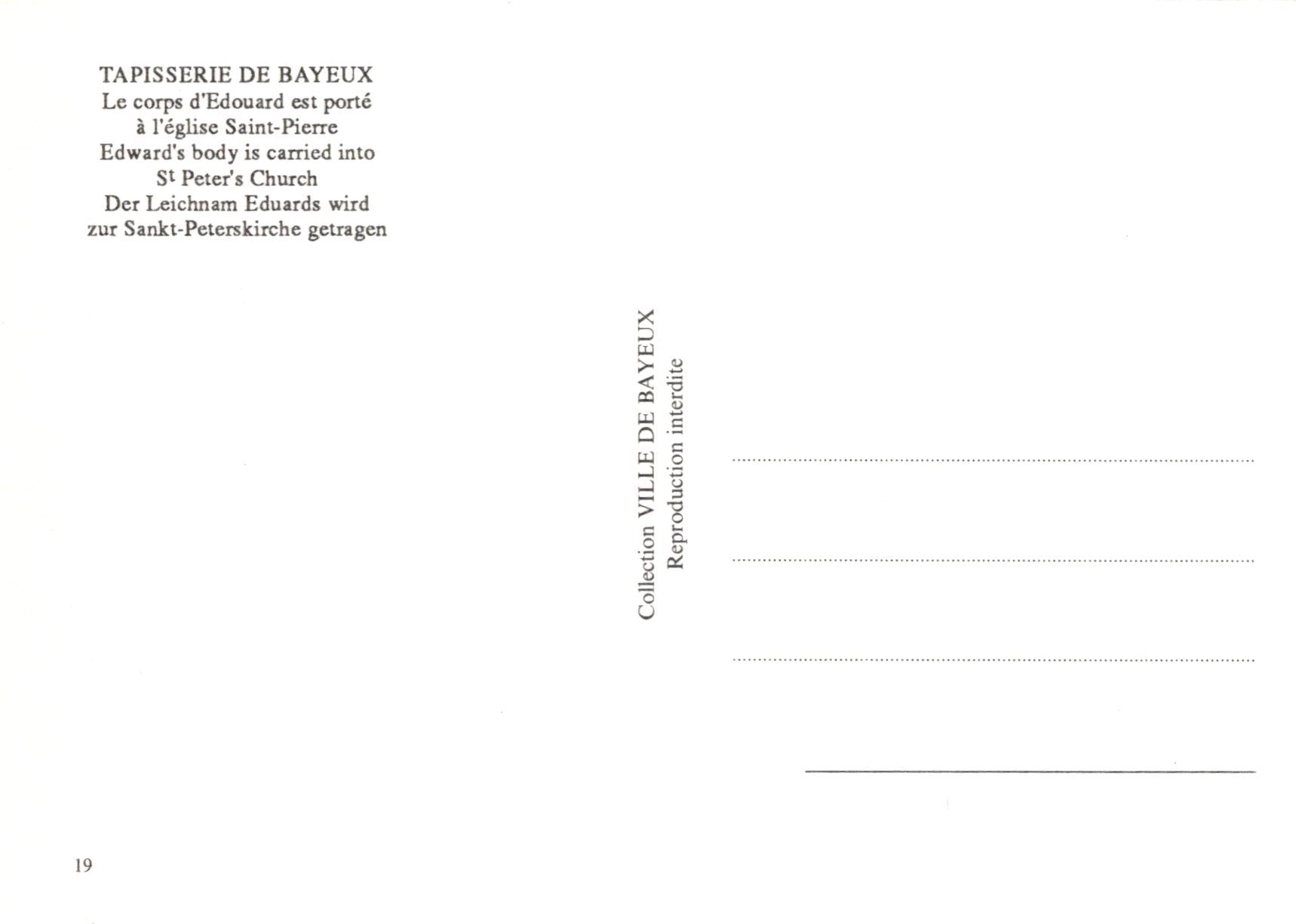 This is a History Postcard - The Bayeux Tapestry. Edward's Body is Carried Into St Peter's Church  SW19589