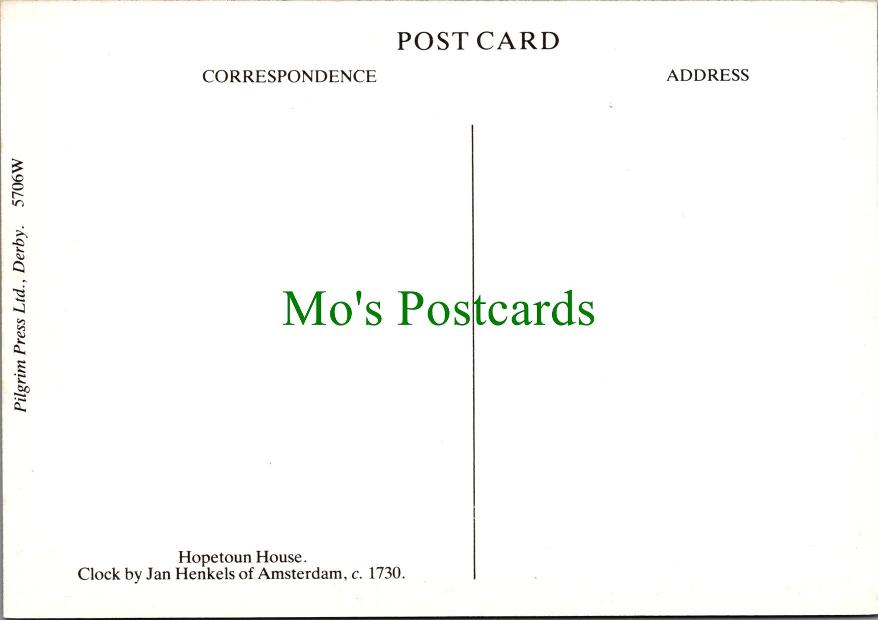 Jan Henkels Clock, Hopetoun House, Queensferry. This is a fantastic continental sized postcard which would be a great addition to your postcard collection. Published by Pilgrim Press Ltd.