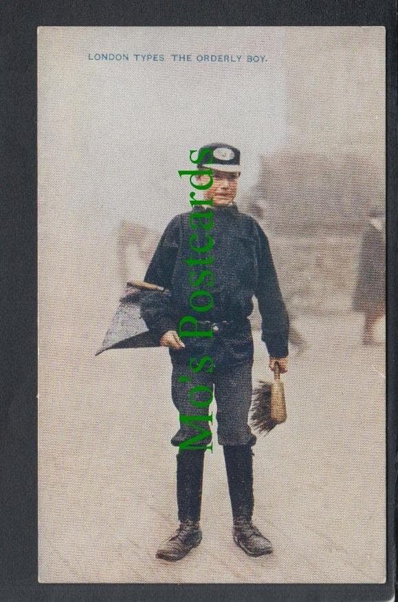 Mo's Postcards offers for sale a postcard of London Types - The Orderly Boy.