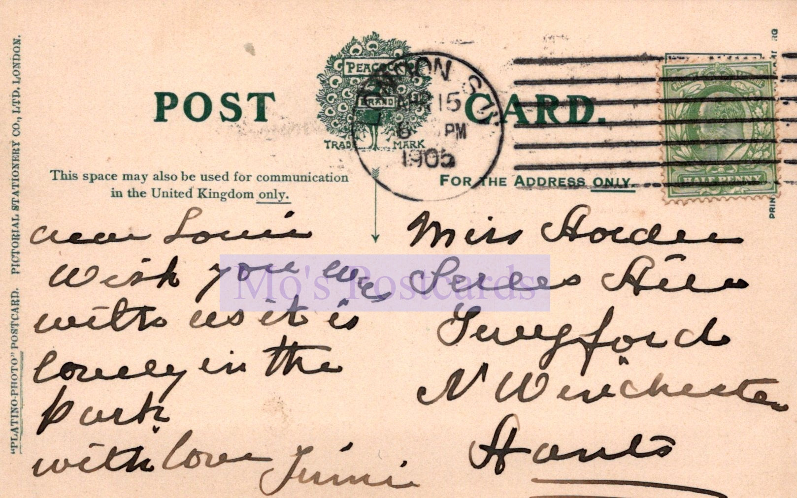 The 'Mo's Postcards' watermark does not appear on the actual postcard'.