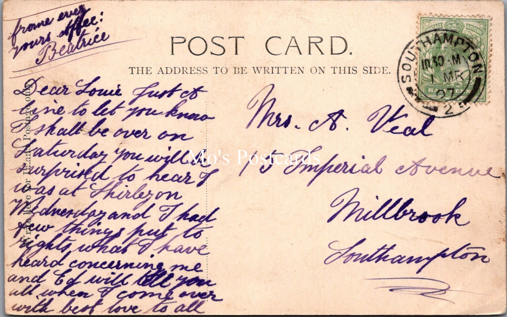 The 'Mo's Postcards' watermark does not appear on the actual postcard'.