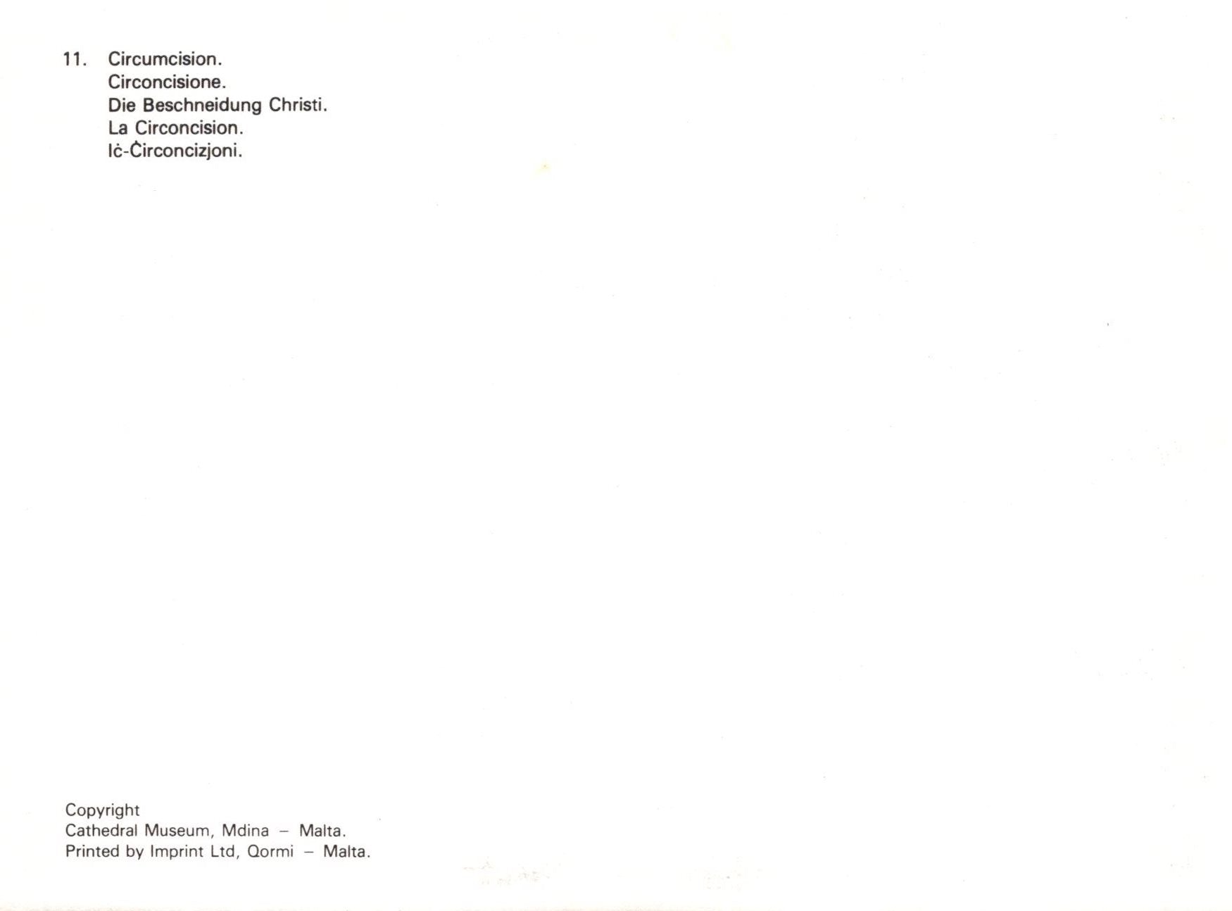 Mo's Ref:  Religious Art Postcard - Circumcision  SW20326