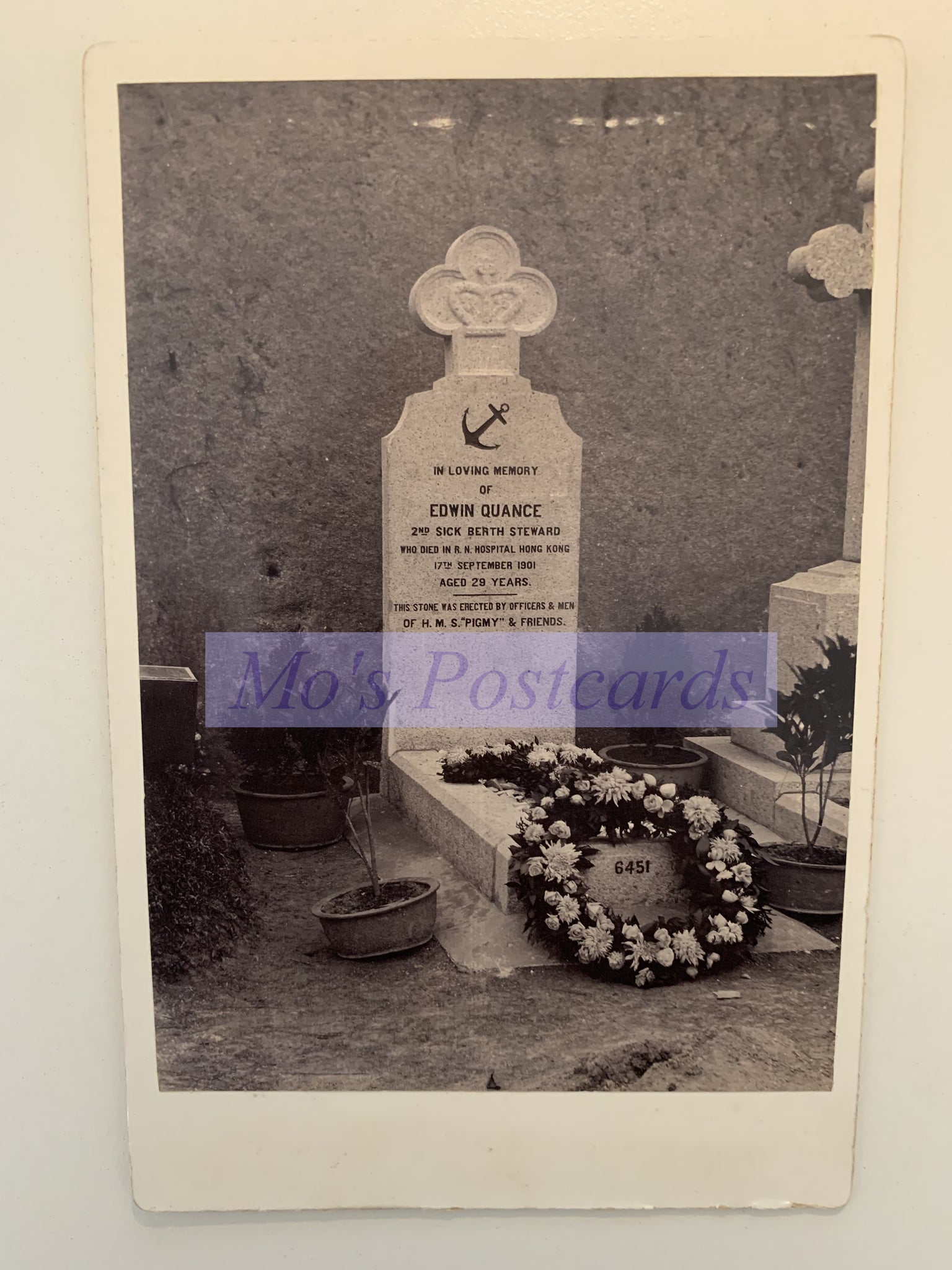 Mo's Ref:  Royal Navy Cabinet Card - Grave of British Navy Sailor Edwin Quance, Hong Kong Cemetery CBC6