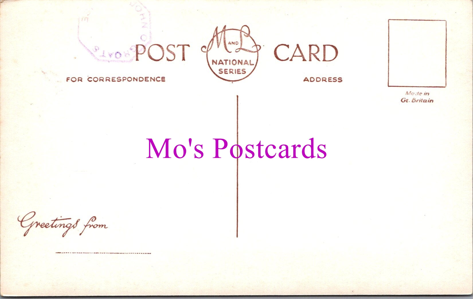 The 'Mo's Postcards' watermark does not appear on the actual postcard'.