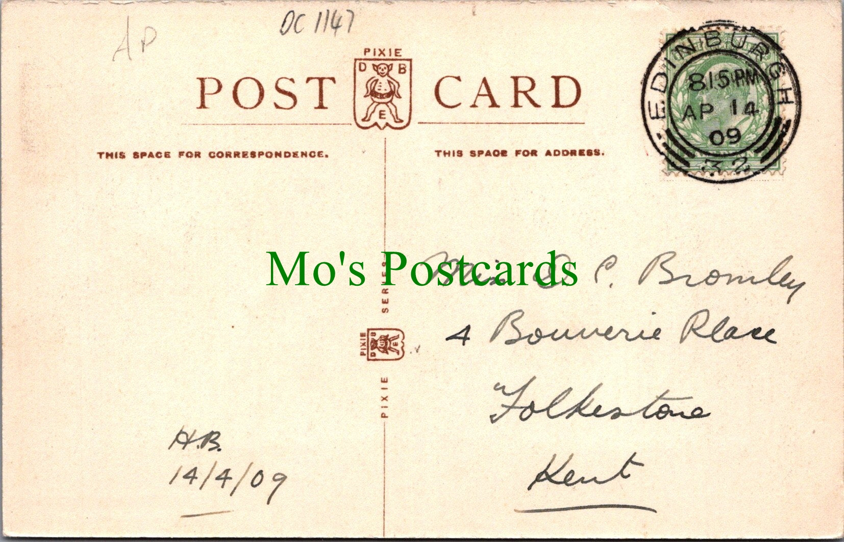 The 'Mo's Postcards' watermark does not appear on the actual postcard'.