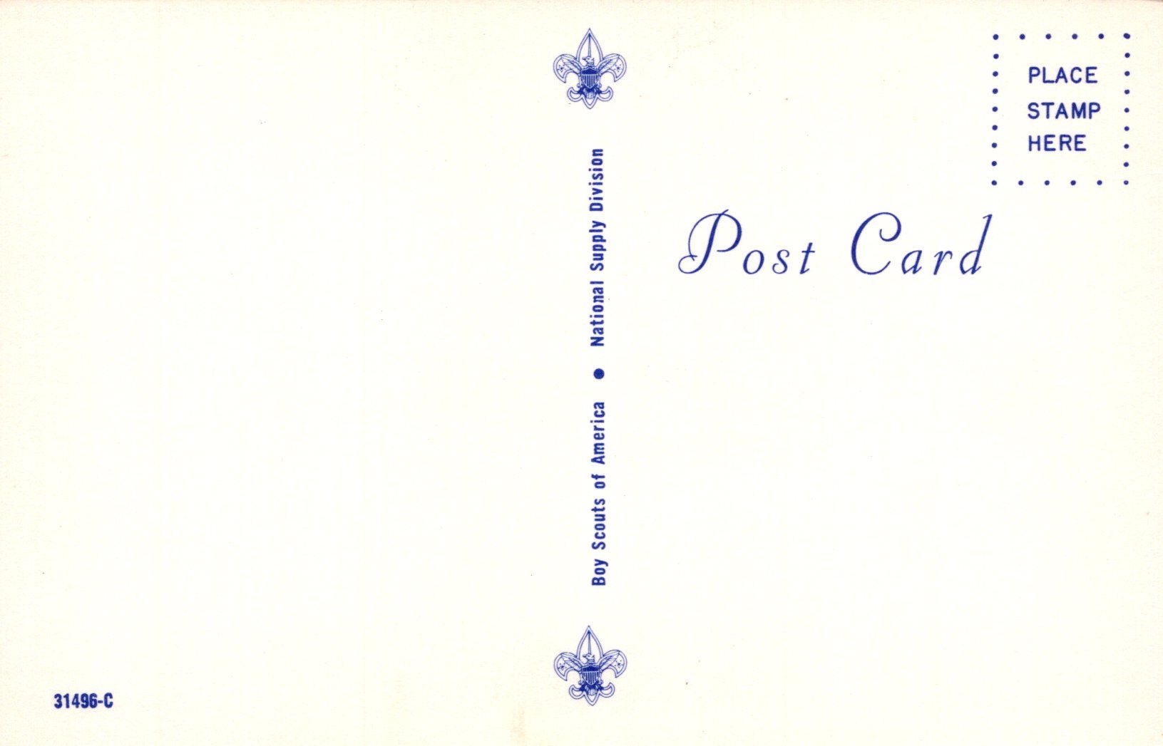 Vintage postcard with Boy Scouts of America logo and text on a light background