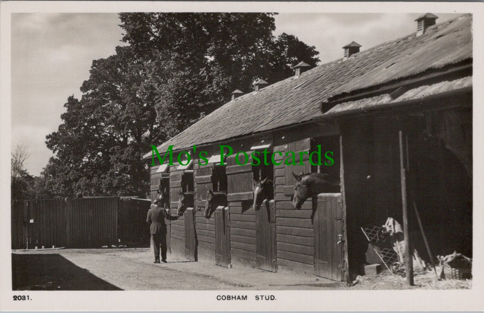 This is a Surrey Postcard - Cobham Stud. Horse Stables RT2465
