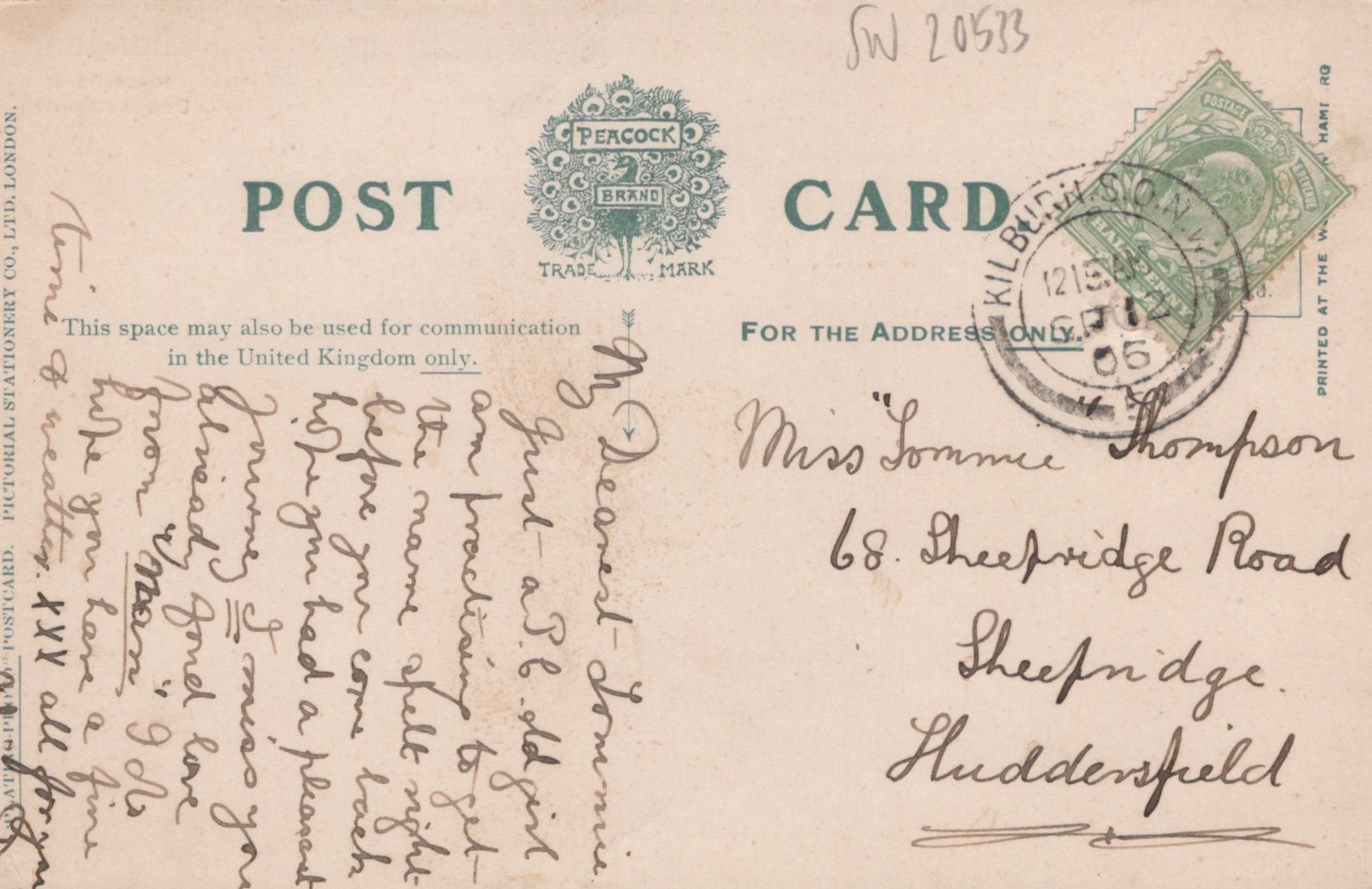 • Load image into Gallery viewer, Vintage postcard with Peacock Tramway Company logo and handwritten text.