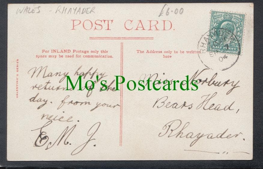 Standard size postcard. Published by Valentine's. Posted in 1904. Very slight edge wear.